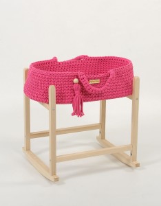 Kosz Mojżesza BOHO bawełniany nosidełko dla lalek z drewnianą kołyską - fuksja