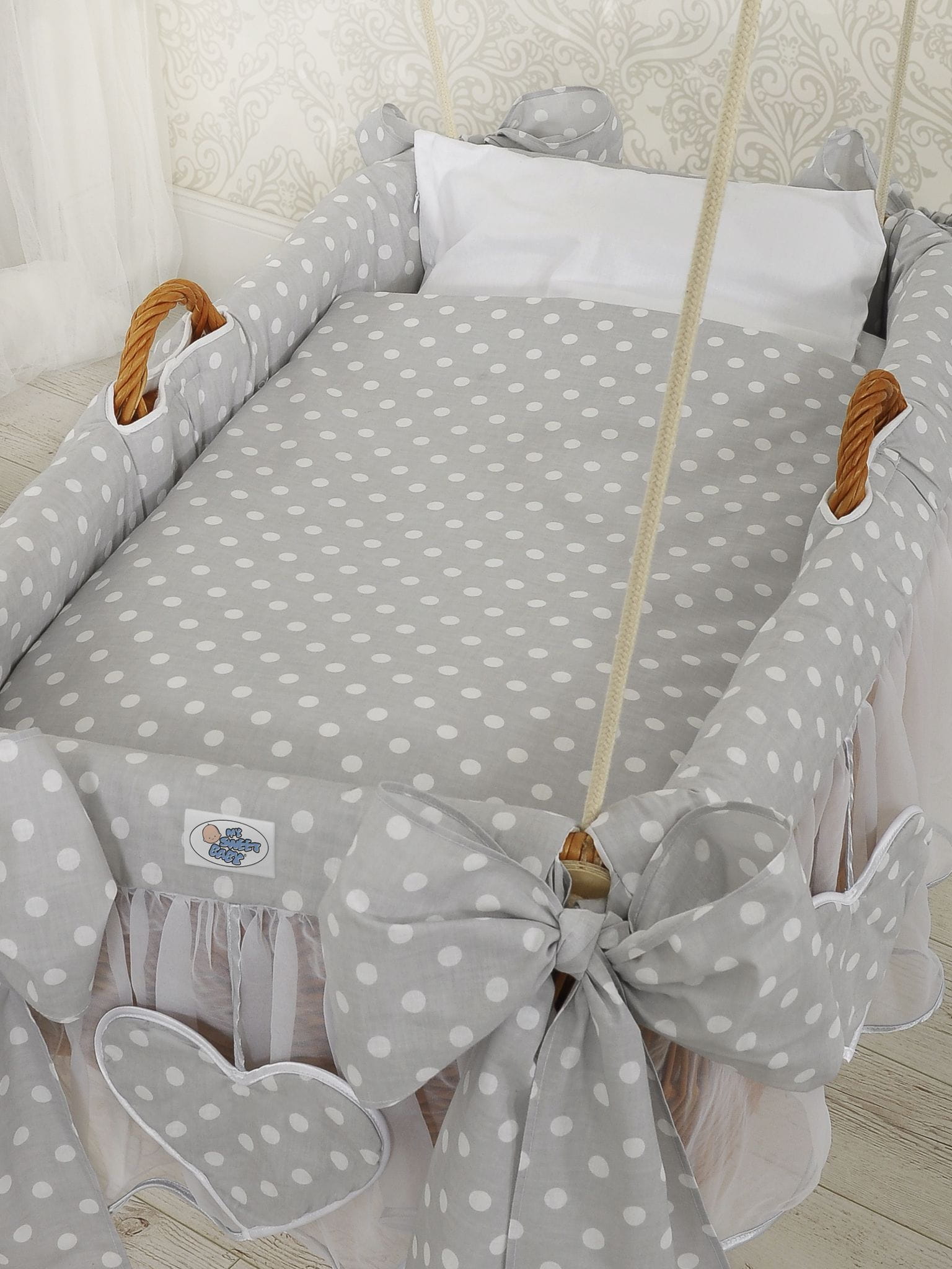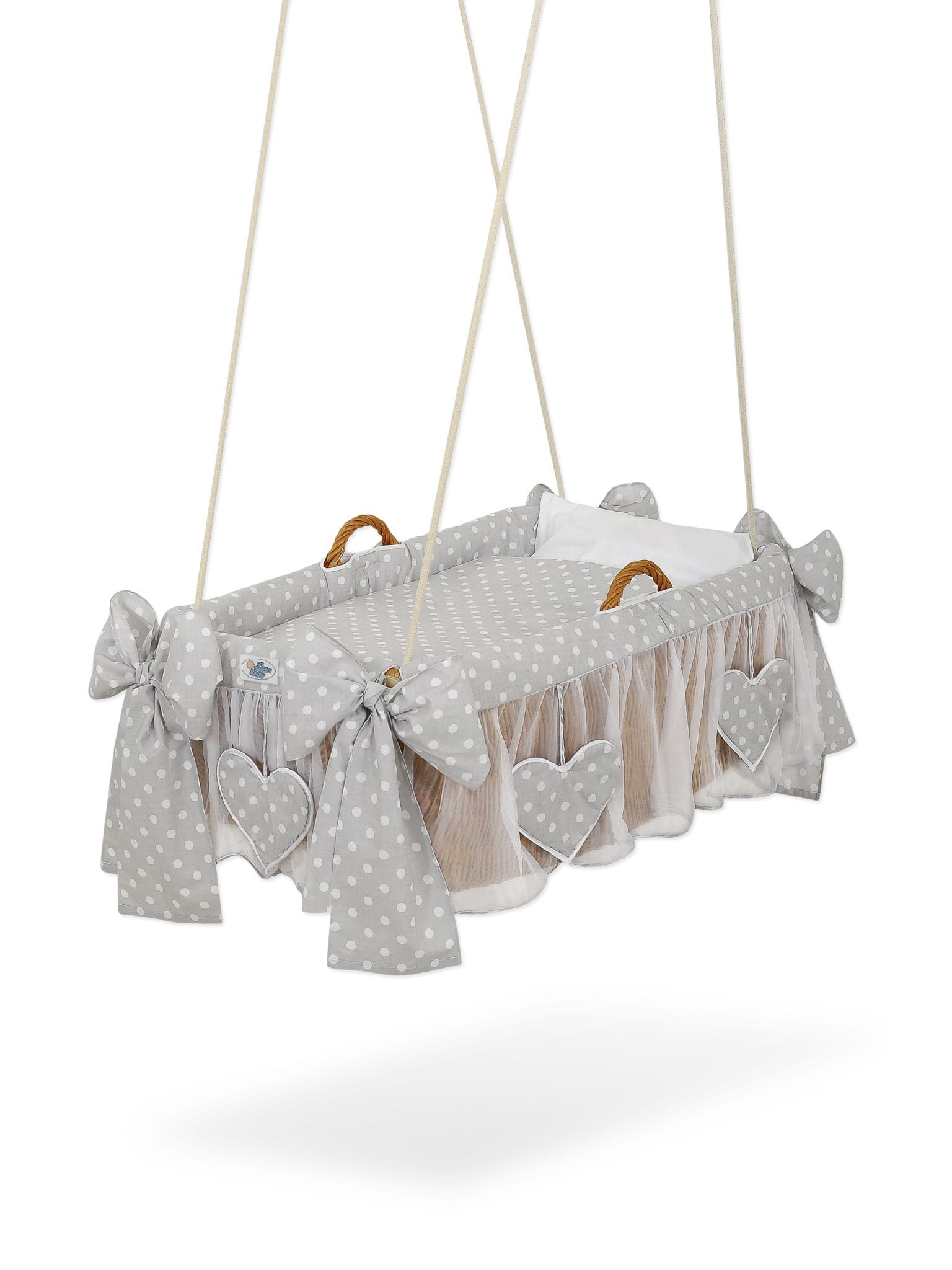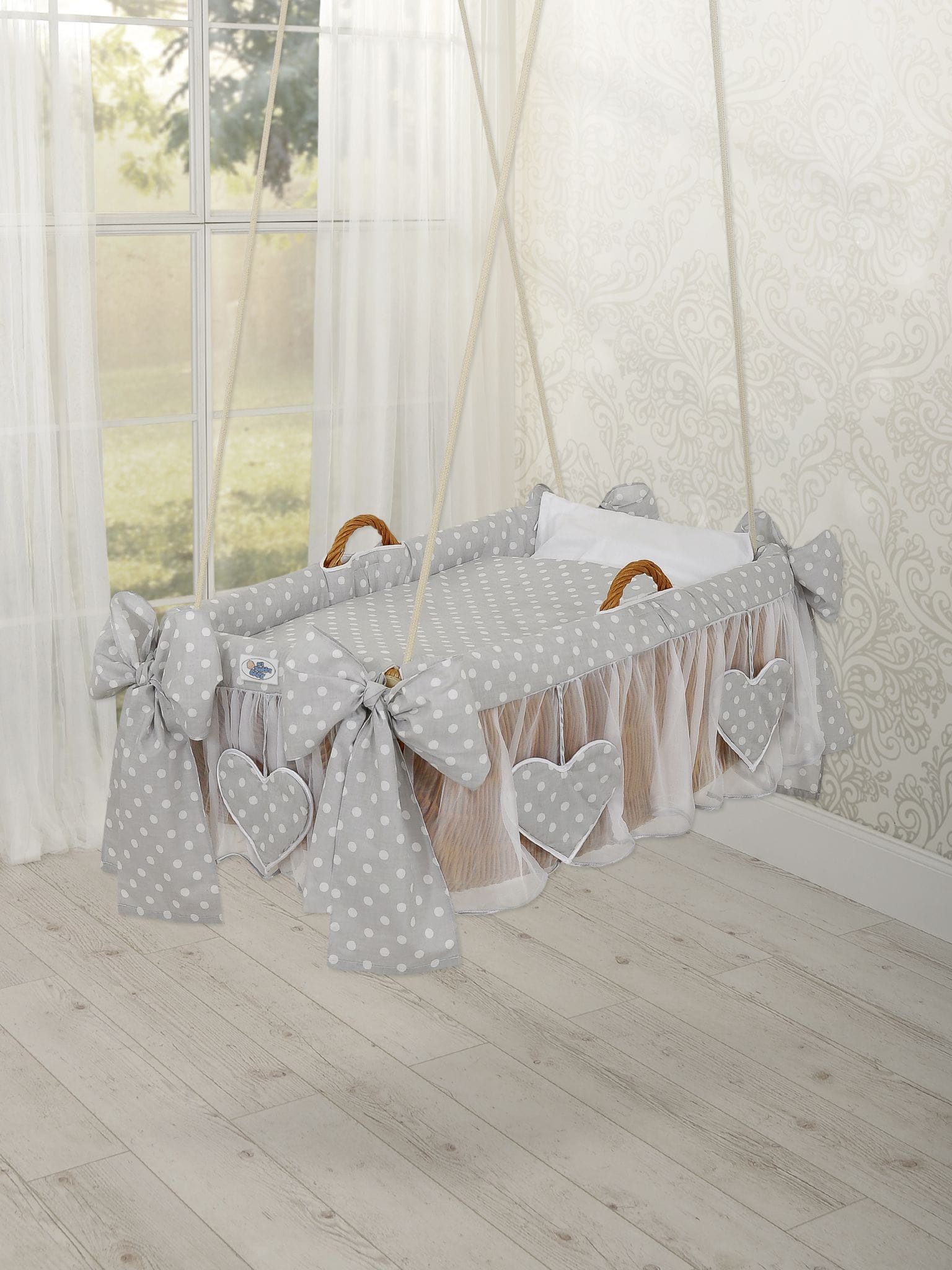 Kosz Mojżesza kołyska wisząca- Grochy na szarym