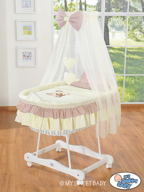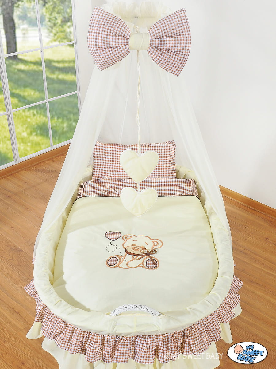 Kosz Mojżesza z baldachimem- Miś z kokardką brązowy