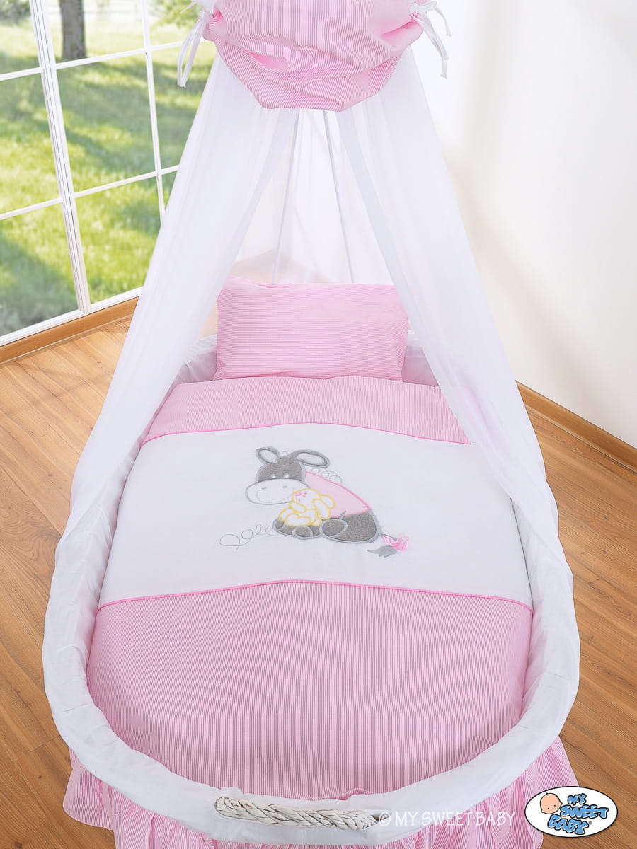 Kosz Mojżesza z baldachimem- Osiołek Lucek różowy
