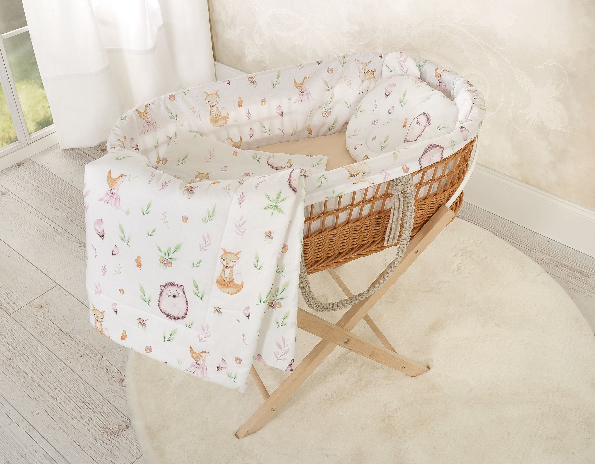 Kosz mojżesza BOHO wiklinowy z wyściółką bawełnianą - leśna delikatość