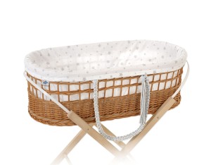W komplecie do kosza Mojżesza wyściółka z atestowanej tkaniny bawełnianej. Wyściółkę można ściągnąć do prania, jest piękna i praktyczna.