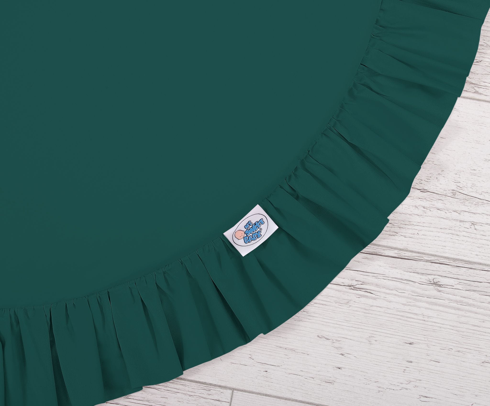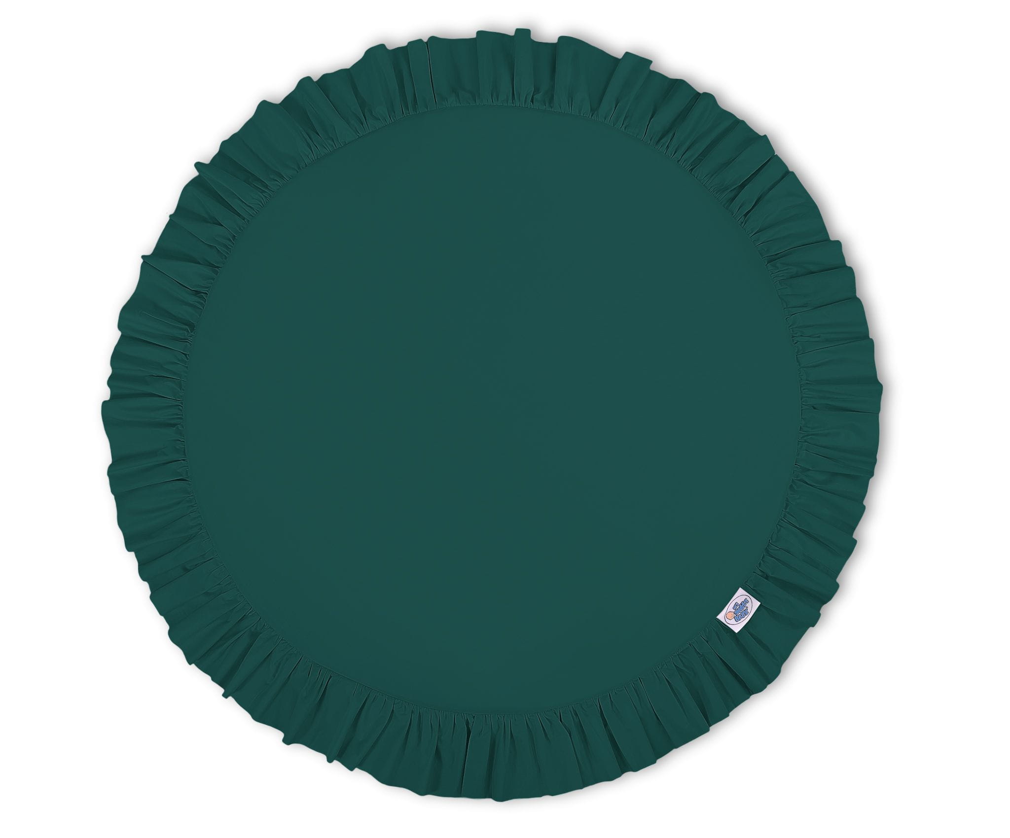 Okrągła duża mata z falbanką. Funkcjonalna i praktyczna. Doskonale sprawdzi się jako dywanik, mata do zabawy lub "podłoga" baldachimu zawieszonego na suficie. Już od pierwszych miesięcy może służyć jako mata do leżenia na brzuszku. Mata posiada miękki materacyk, które świetnie izoluje od twardej i zimnej podłogi. Okrągła mata to również świetne miejsce do zabawy i odpoczynku. Wykonana z tkaniny 100% bawełnianej, posiadającej atest Okotex. Mata jest rozbieralna, dzięki czemu łatwo wyprać sam pokrowiec. Wkładka maty wykonana jest z nowoczesnego antyalergicznego atestowanego surowca.