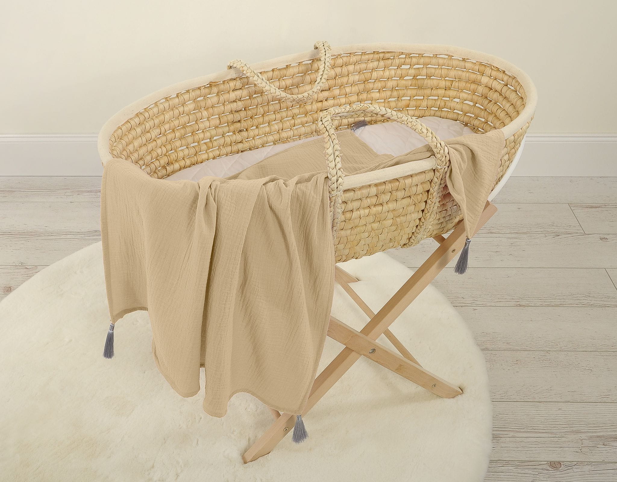 Muślinowy kocyk dla niemowląt z chwostami - camel
