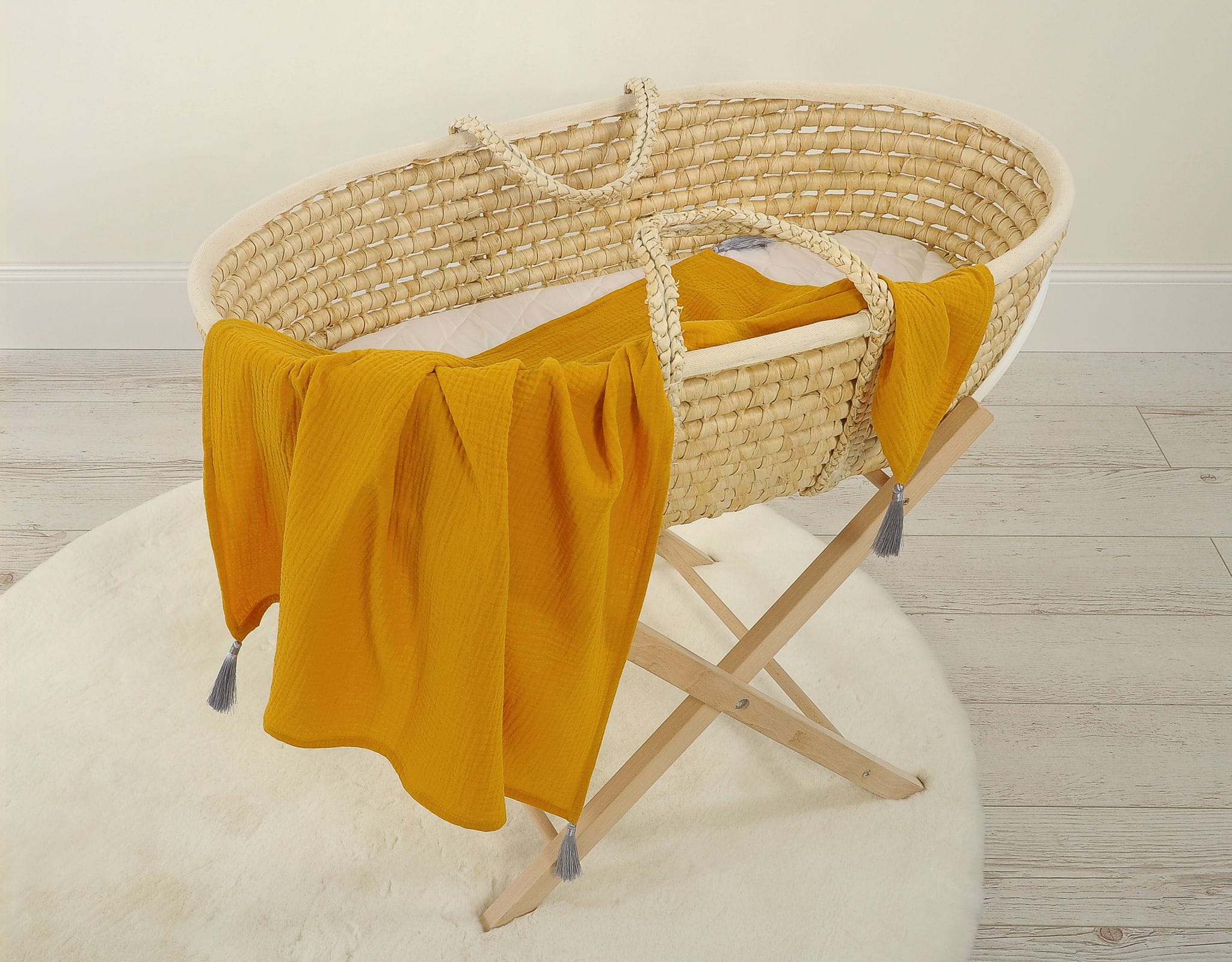 Muślinowy kocyk dla niemowląt z chwostami - musztardowy
