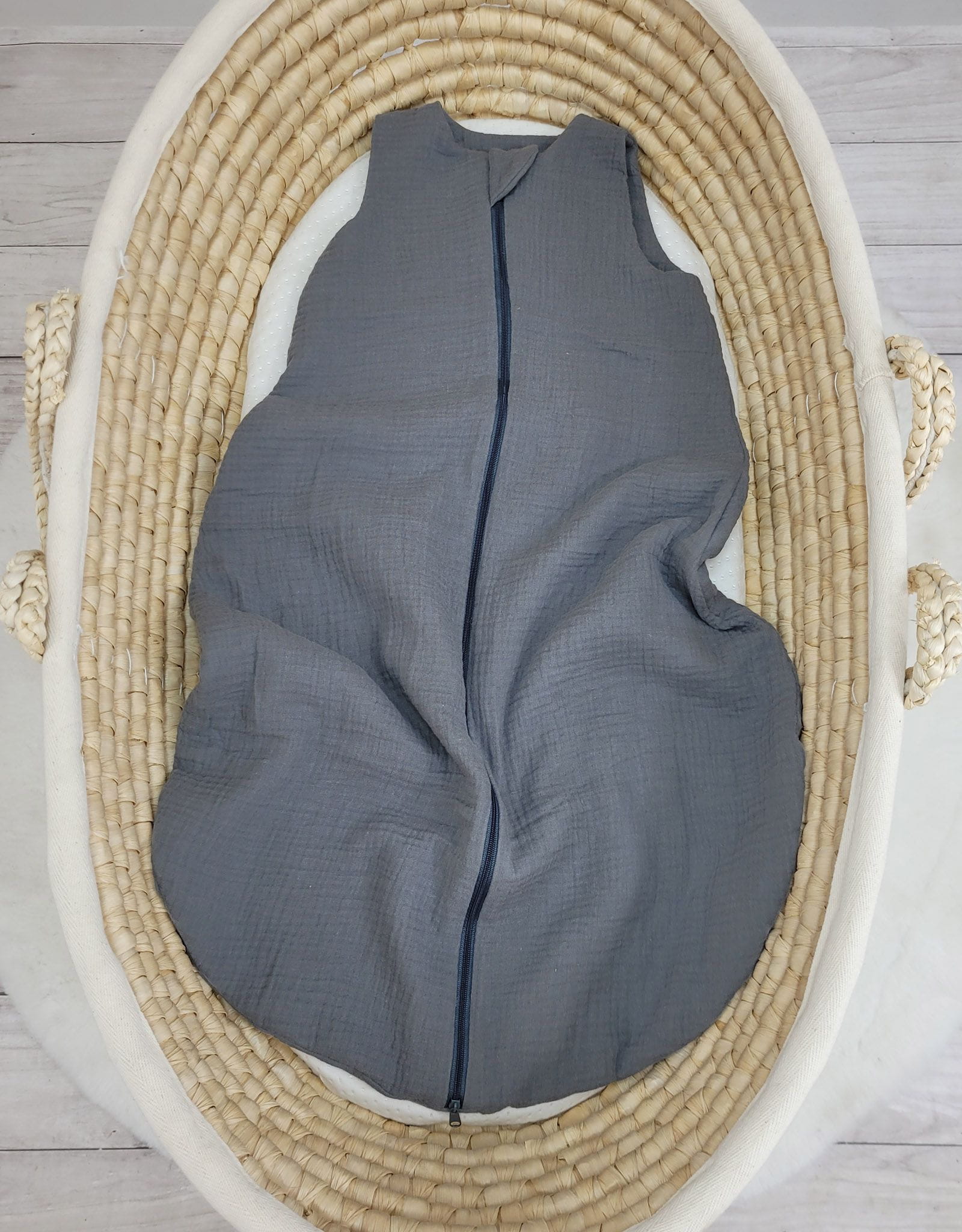 Muślinowy śpiworek dla dzieci zaokrąglony M 6-12 mcy letni TOG 1.0 - antracyt