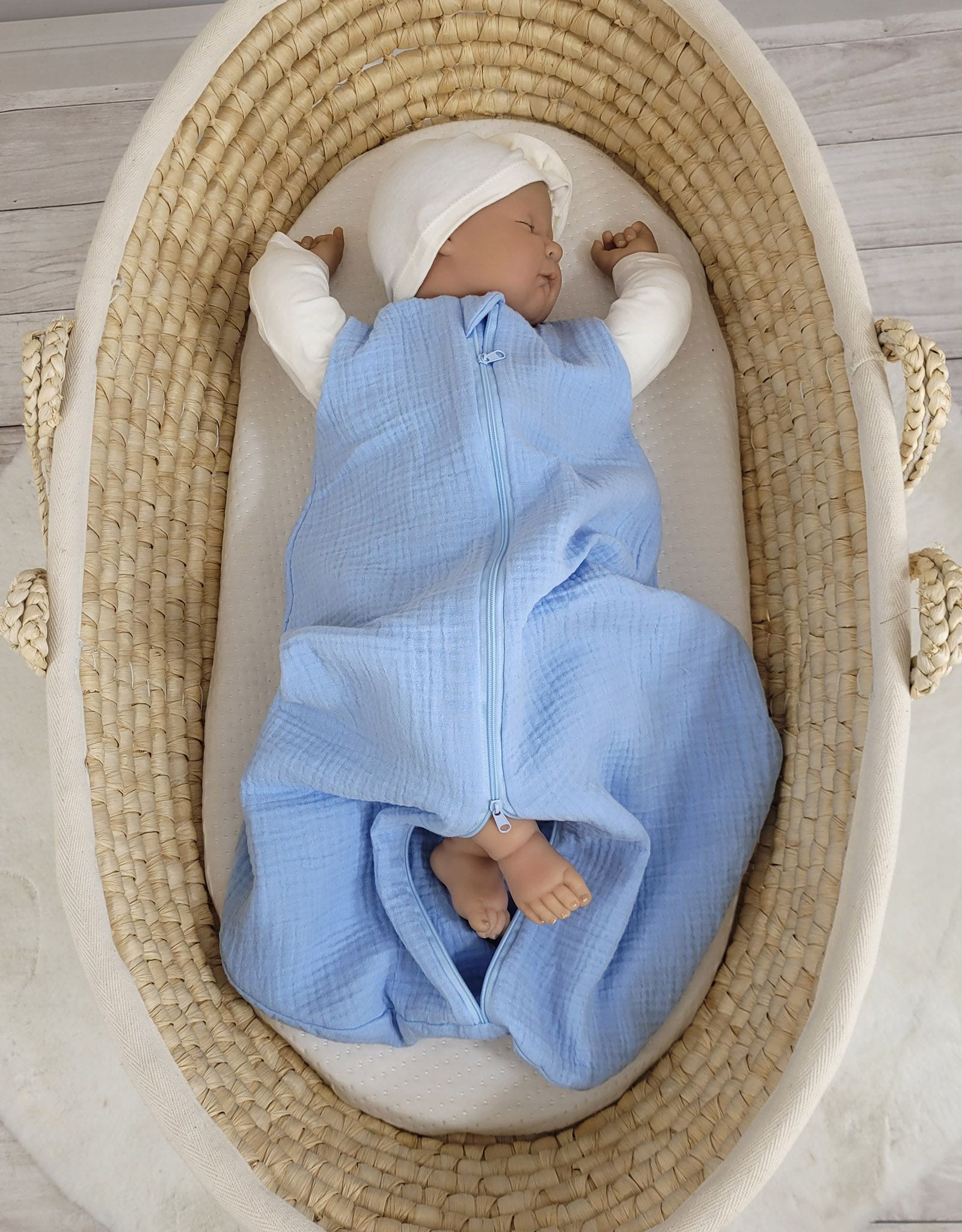 Muślinowy śpiworek dla dzieci zaokrąglony S 0-6 mcy letni TOG 1.0 - blue