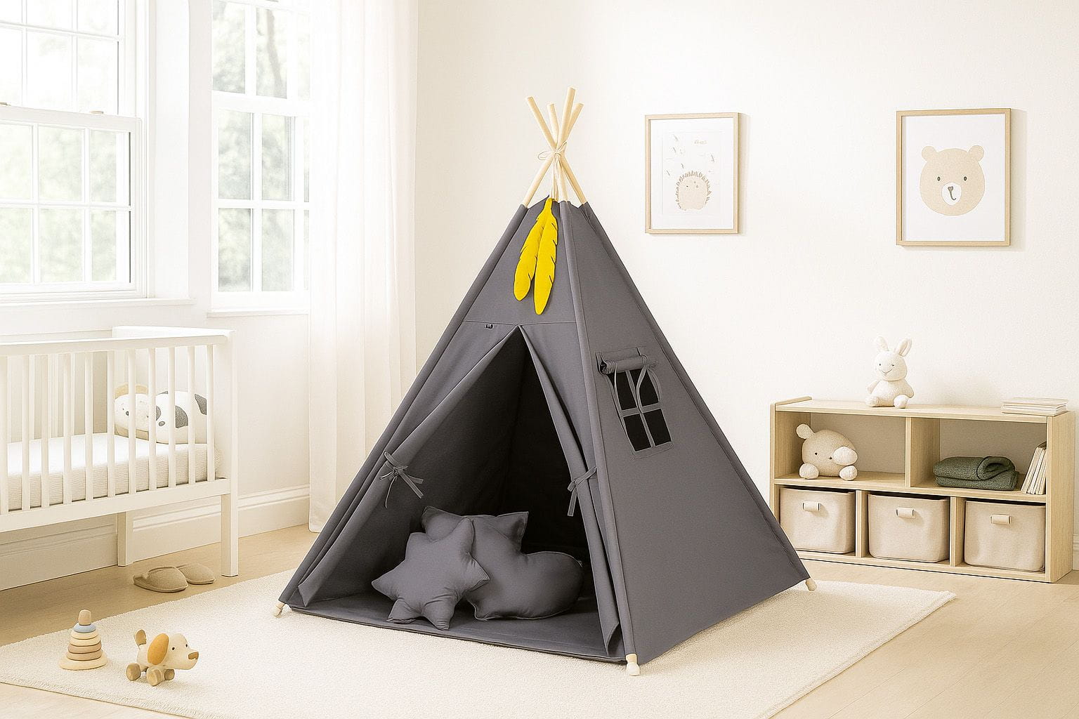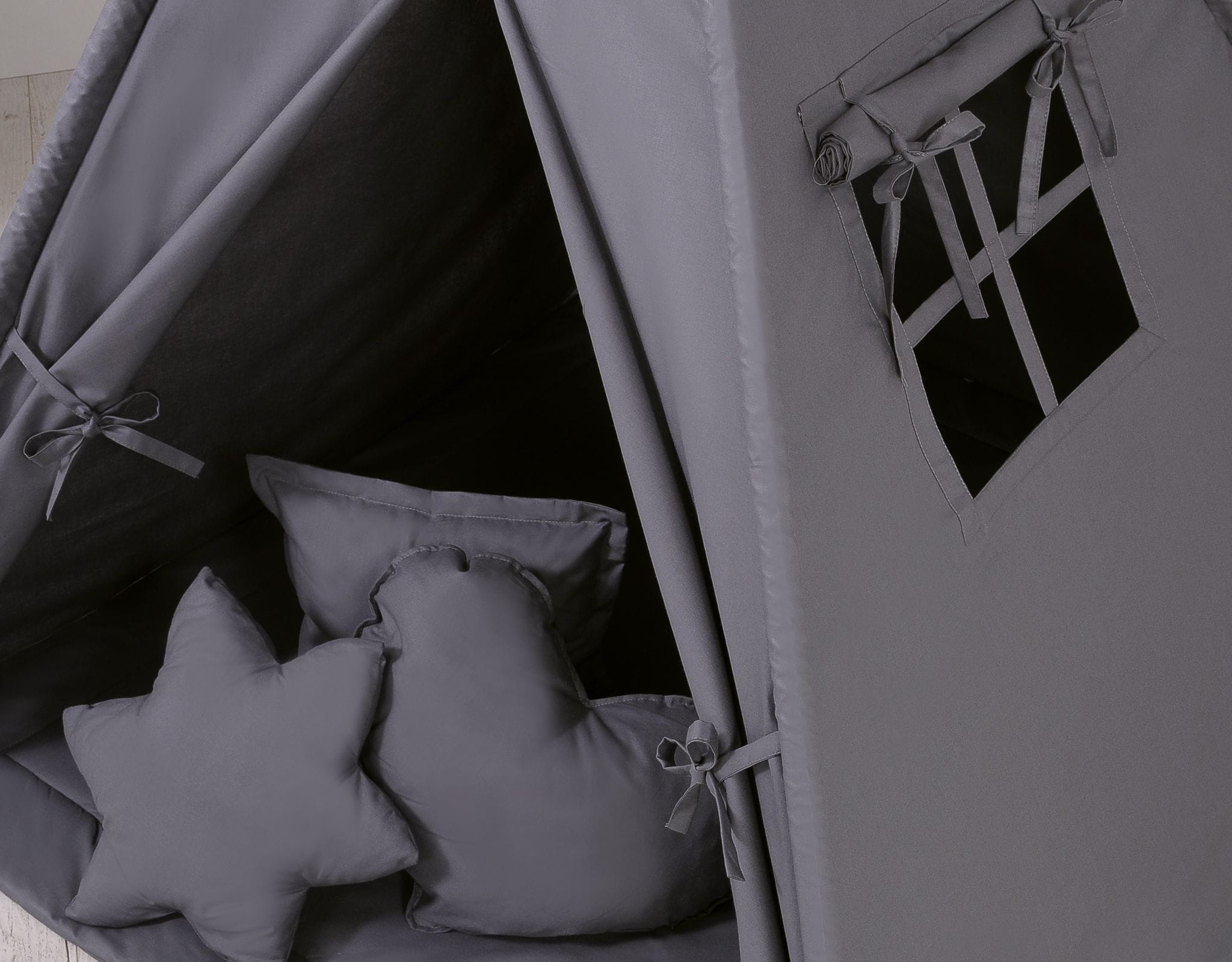 Namiot TIPI dla dzieci + mata + poduszki + zawieszki pióra - antracyt