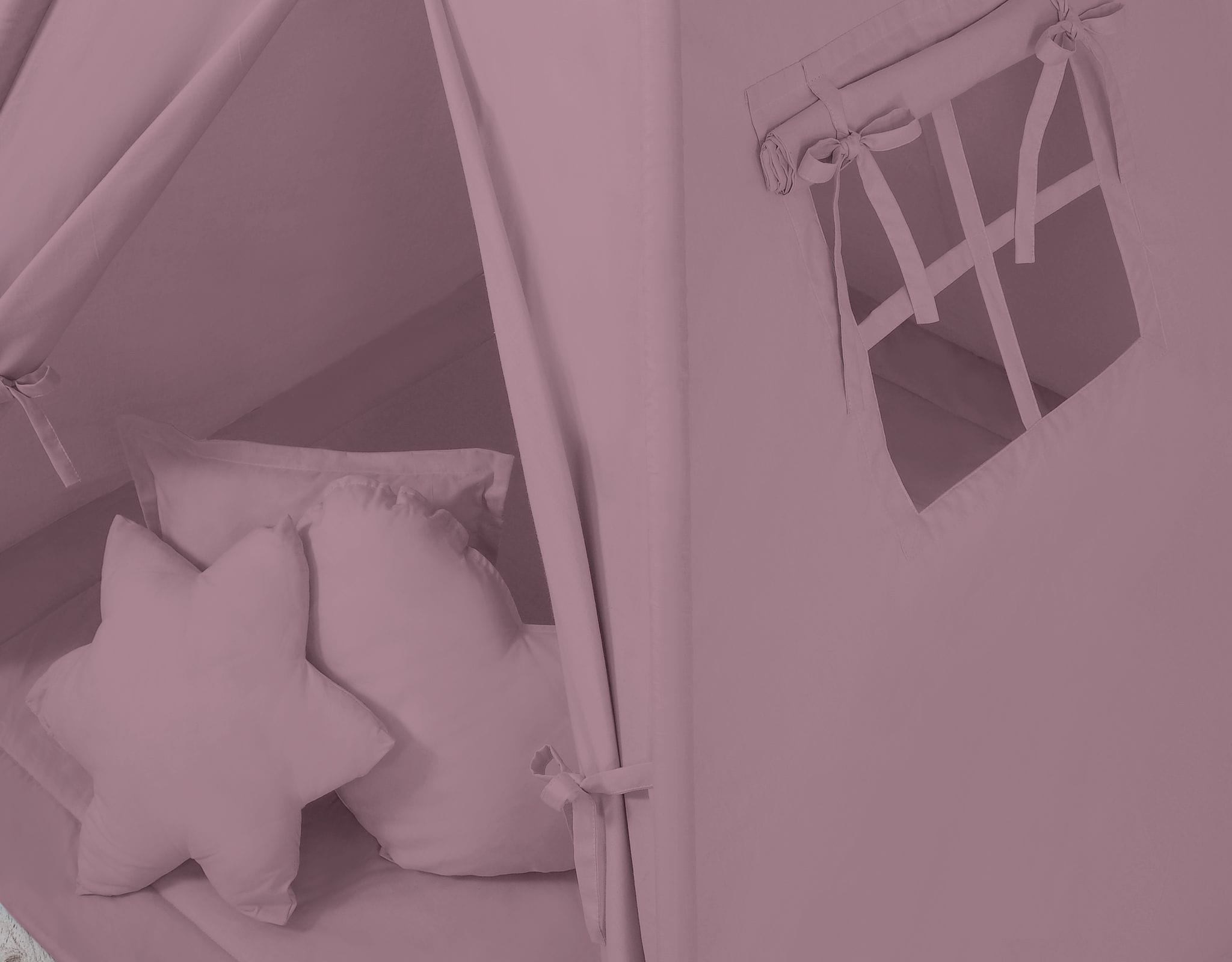 Namiot TIPI dla dzieci + mata + poduszki + zawieszki pióra - róż retro