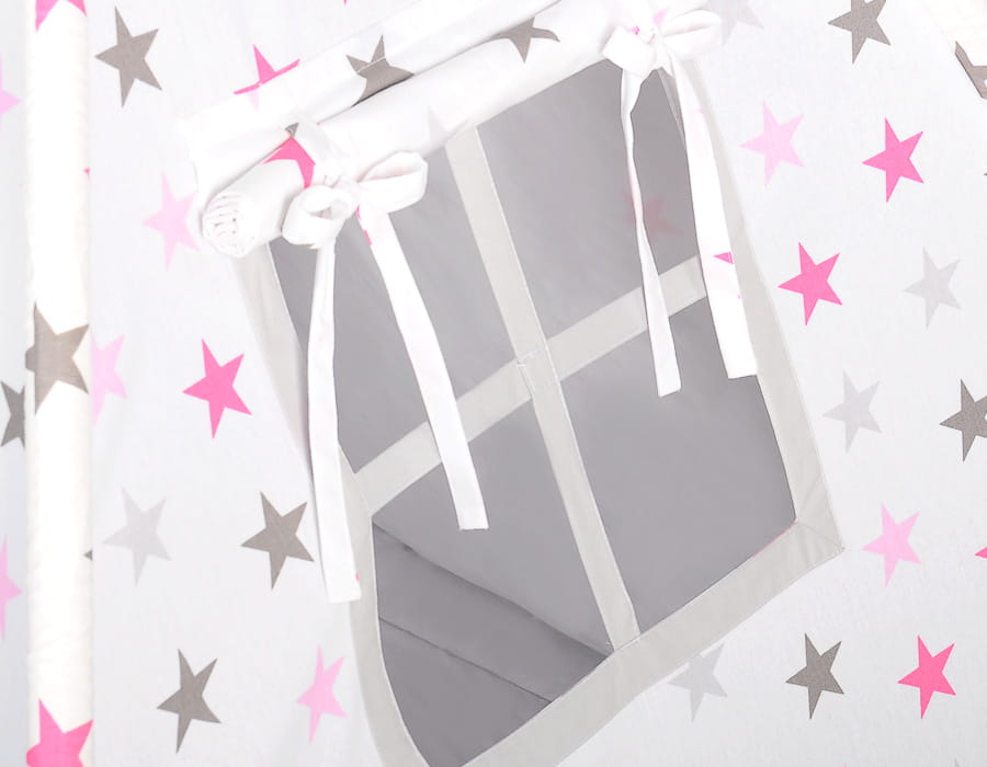 Namiot TIPI dla dzieci +mata + zawieszki pióra - Gwiazdy szaro-różowe/szary