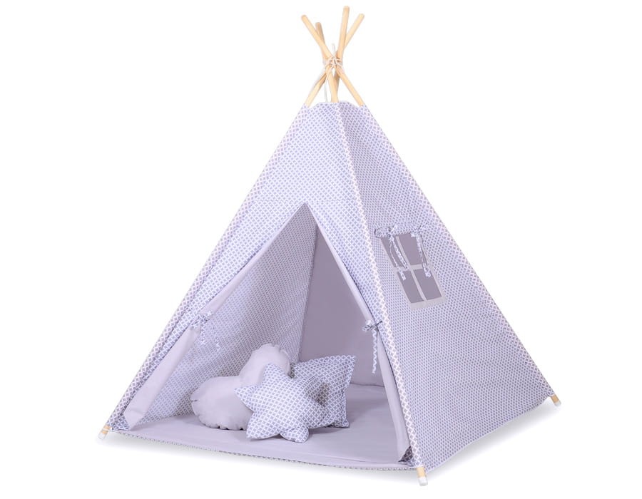 Namiot TIPI dla dzieci +mata + zawieszki pióra - mini-rozeta szara