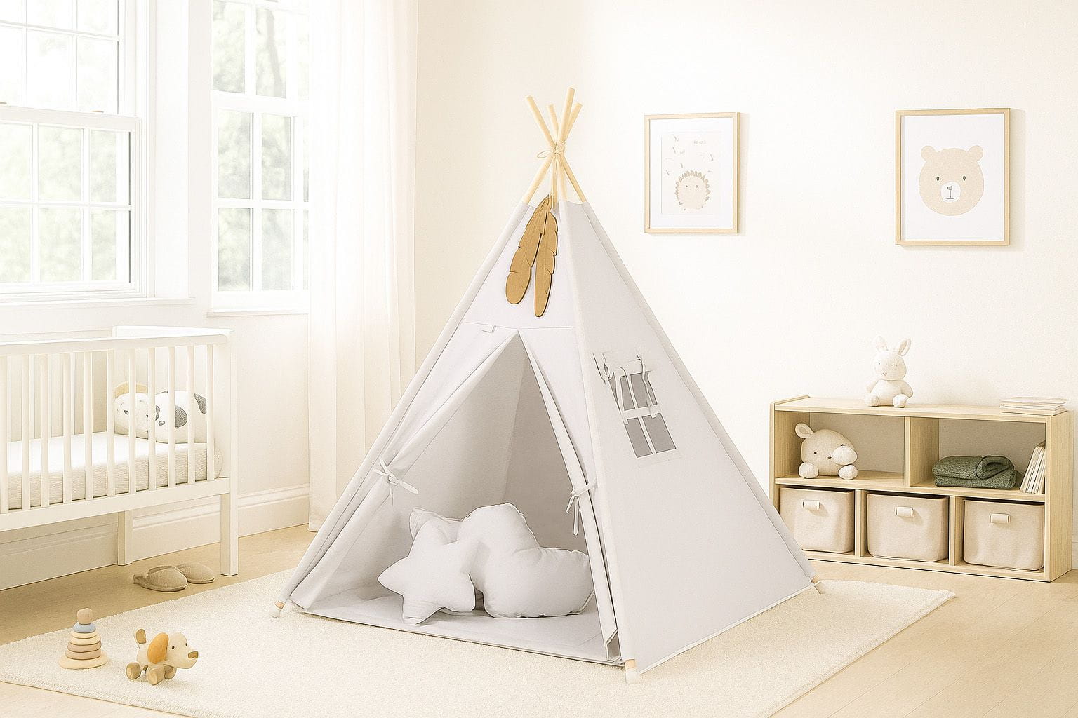 Namiot TIPI dla dzieci +mata + zawieszki pióra - szary