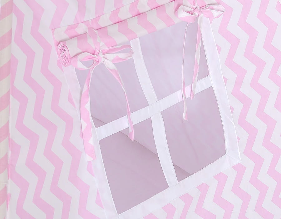 Namiot Tipi dla dzieci+ zawieszki pióra - Chevron różowy