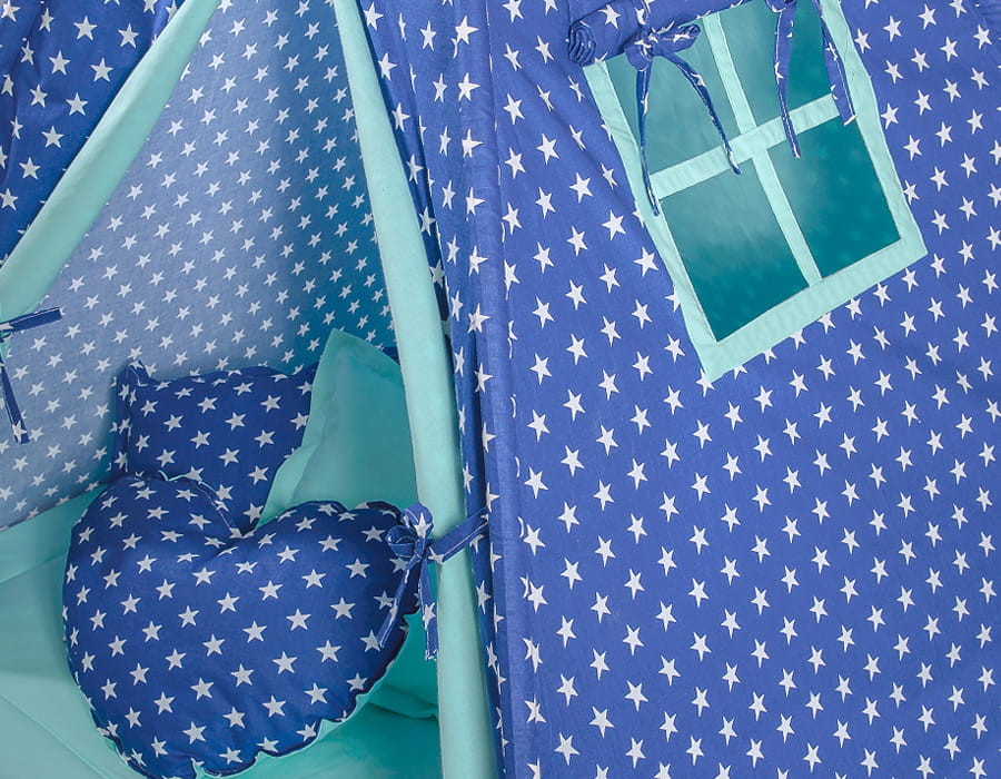 Namiot Tipi dla dzieci+ zawieszki pióra - Gwiazdki granatowe