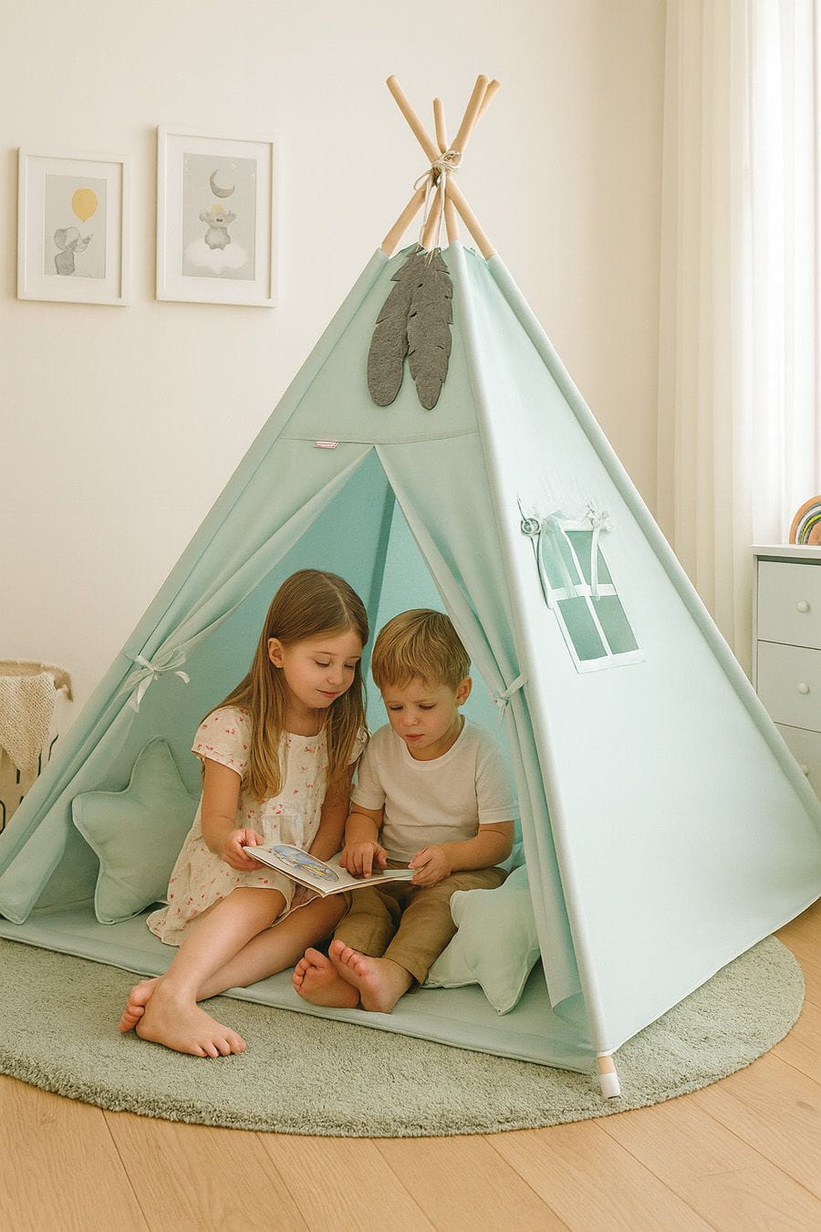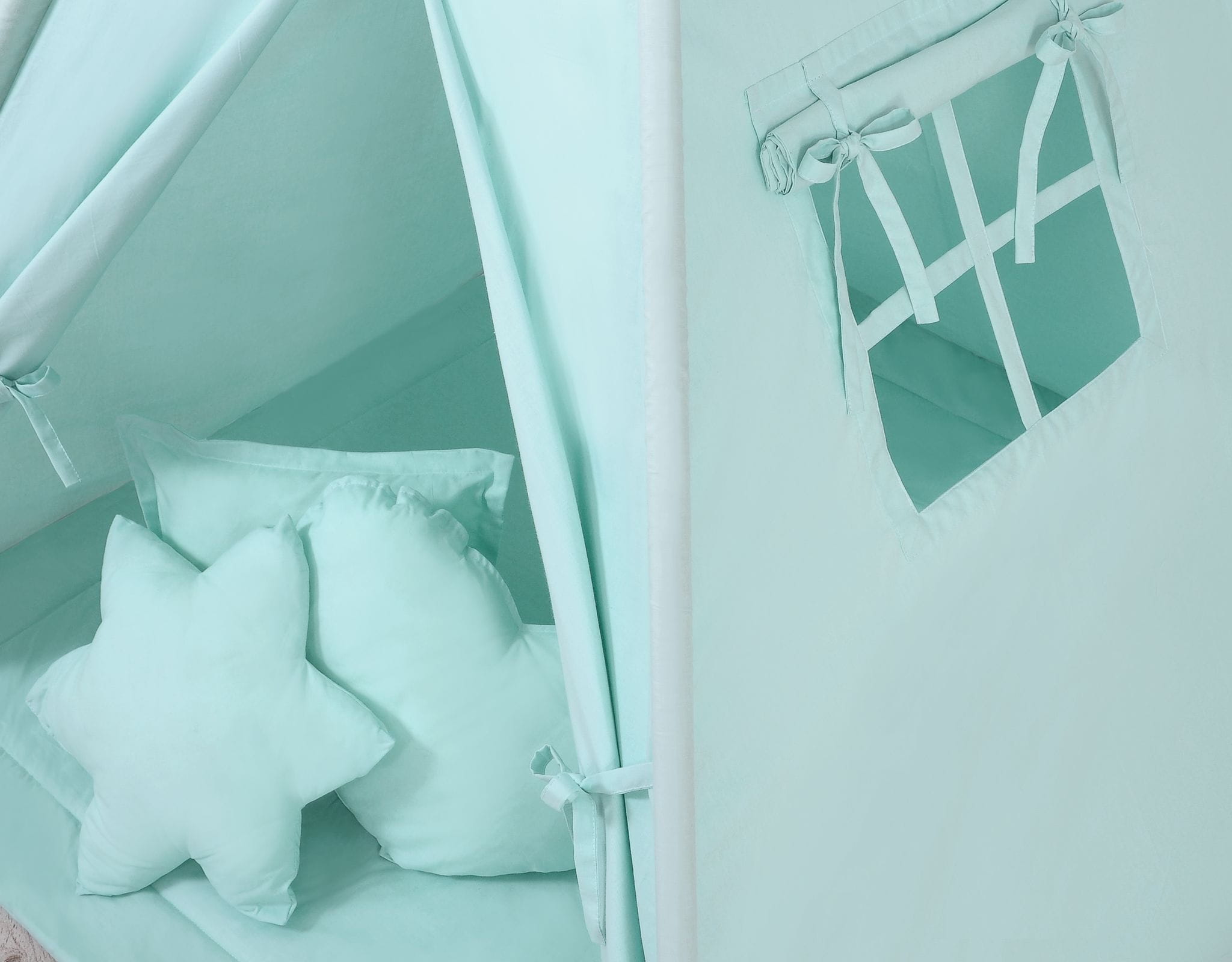 Namiot Tipi dla dzieci + zawieszki pióra - jasna mięta