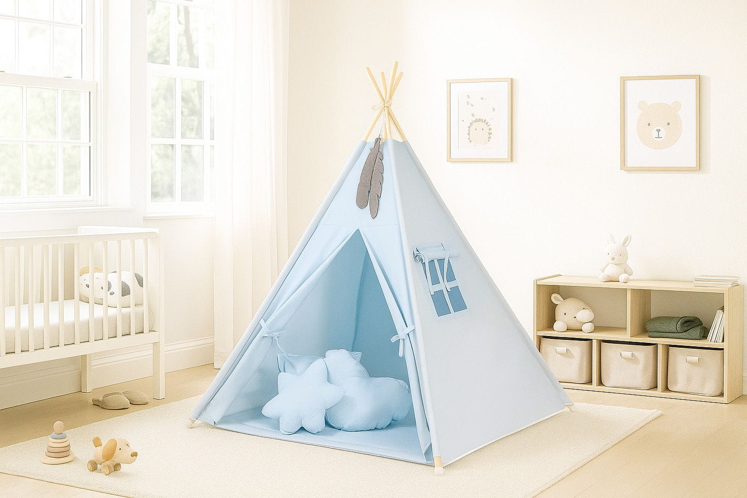 Namiot Tipi dla dzieci + zawieszki pióra - niebieski