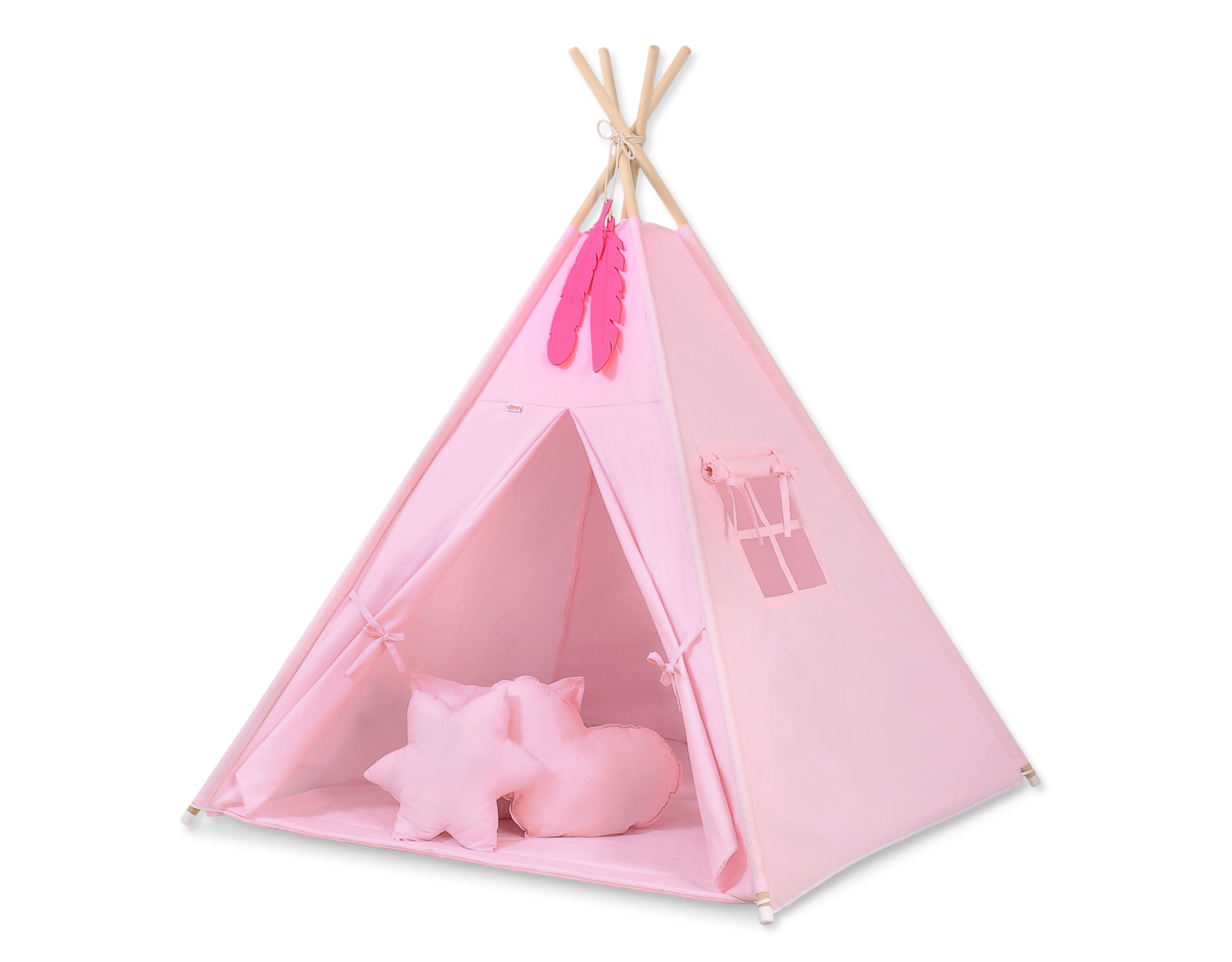Namiot Tipi dla dzieci + zawieszki pióra - różowy