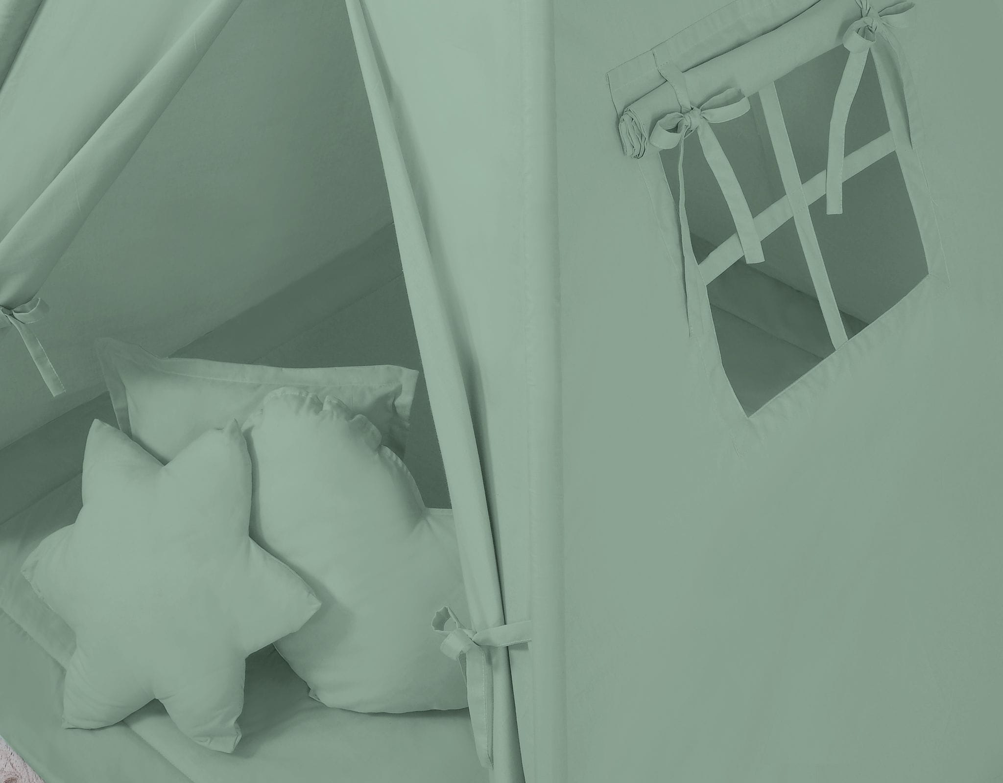 Namiot Tipi dla dzieci + zawieszki pióra - szałwia