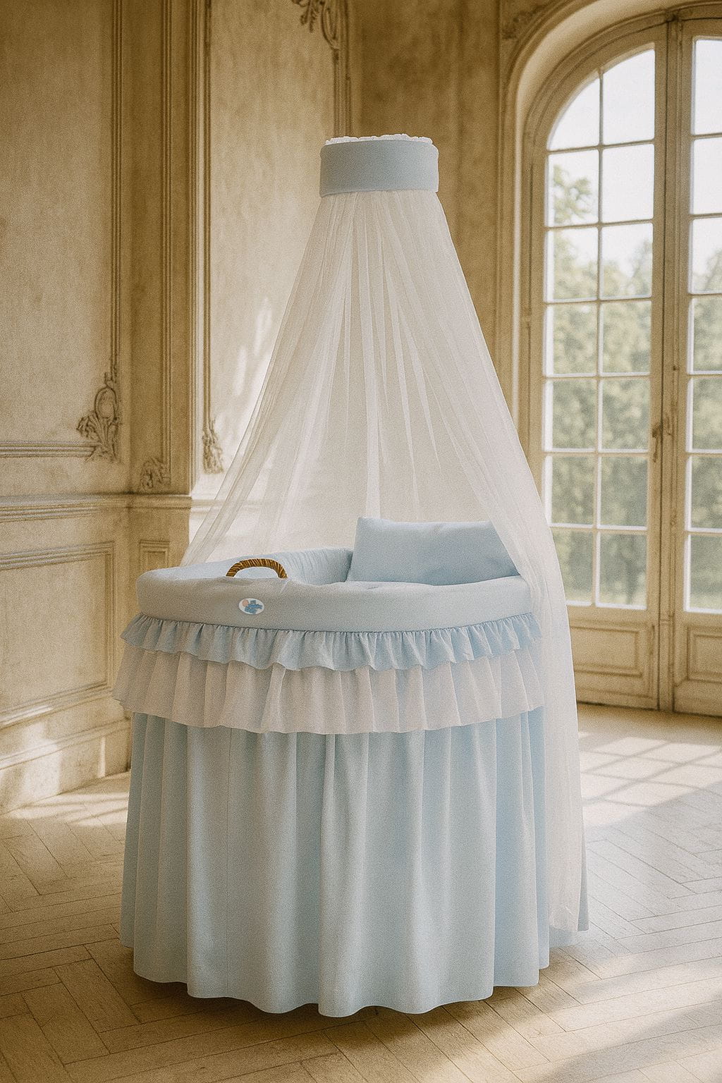 Obszycie 4-cz do kosza Mojżesza wiklinowego ze baldachimem Little Prince - niebieskie