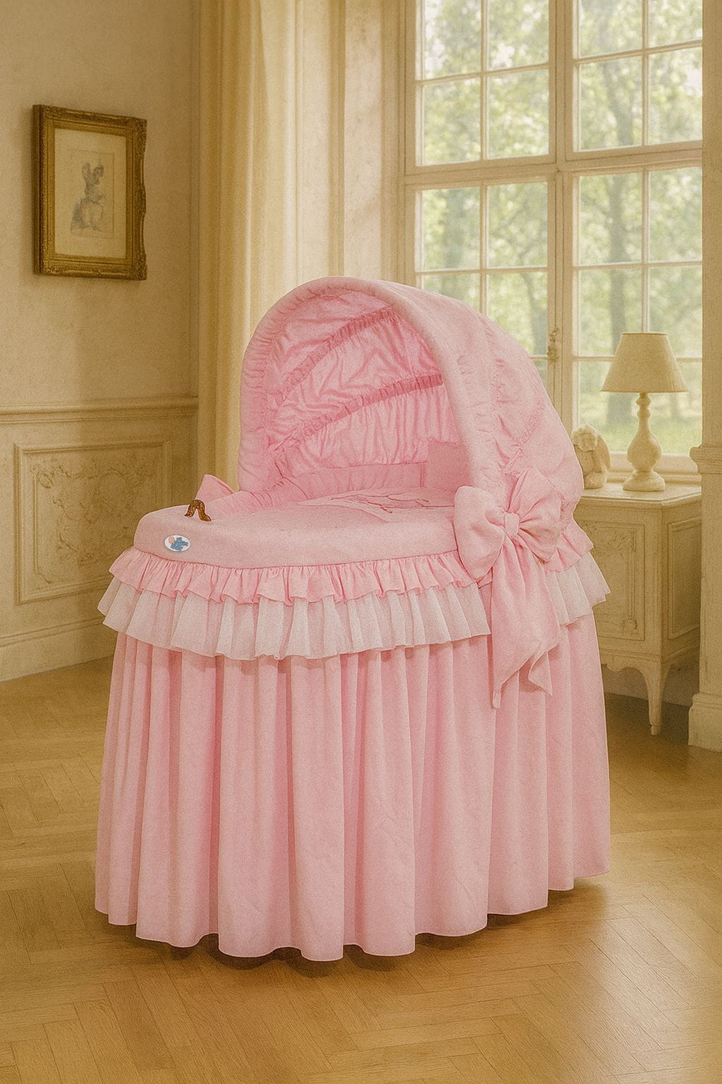 Obszycie 4-cz do kosza Mojżesza wiklinowego ze składaną budką- Little Princess różowy