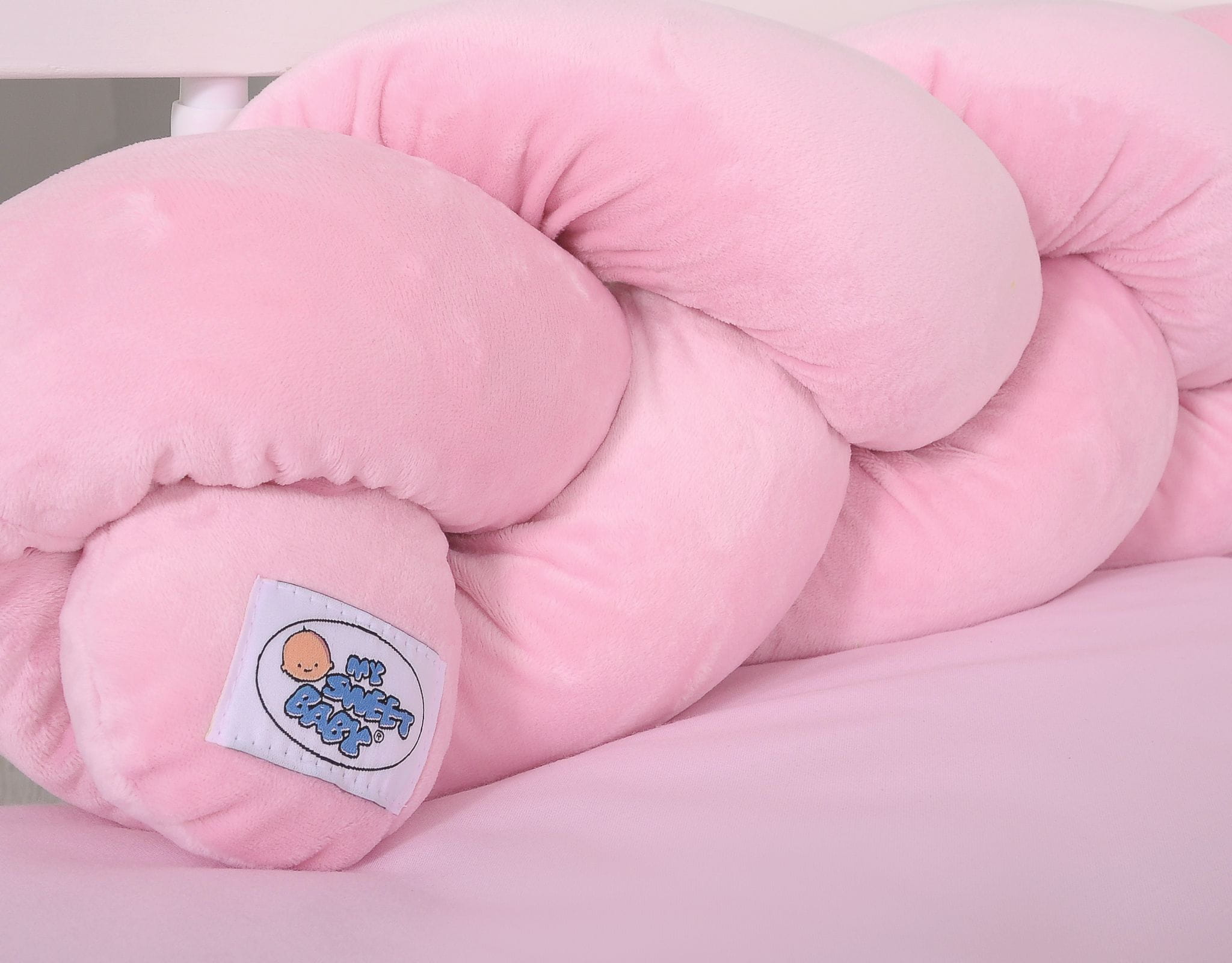 Ochraniacz warkocz pleciony MINKY do łóżeczka 180cm - różowy