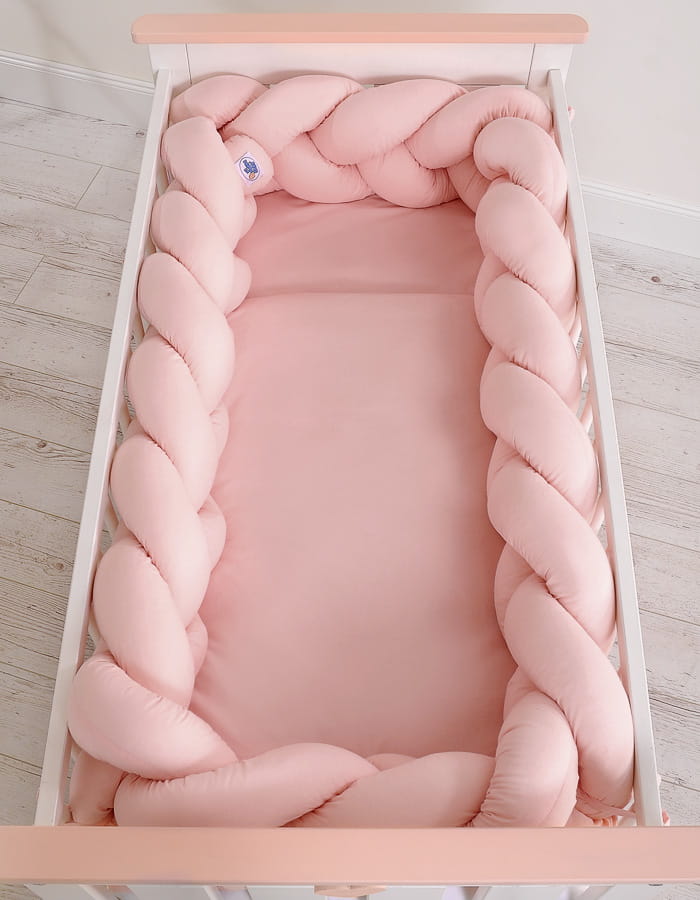 Ochraniacz warkocz pleciony do łóżeczka XXL - brudny róż