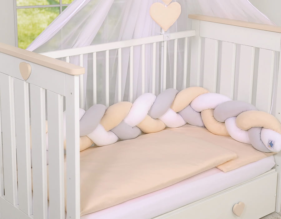 Ochraniacz warkocz pleciony do łóżeczka - biały-szary-beżowy