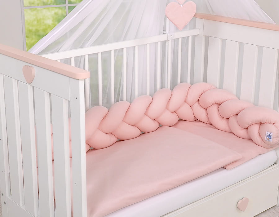 Ochraniacz warkocz pleciony do łóżeczka - brudny róż