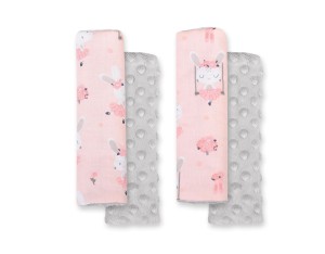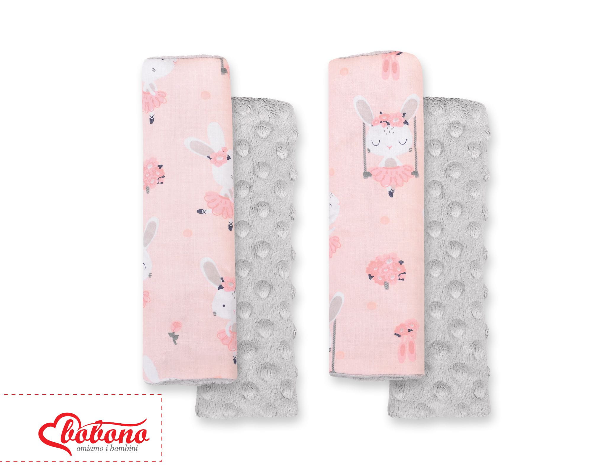 Ochraniacze na pasy BOBONO do wózka minky- króliczki baletnice różowe/szary