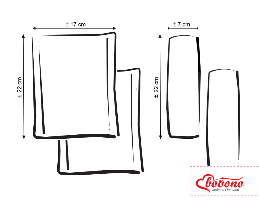 Wymiary ochraniaczy: 22x17cm, po złożeniu 22x7cm.