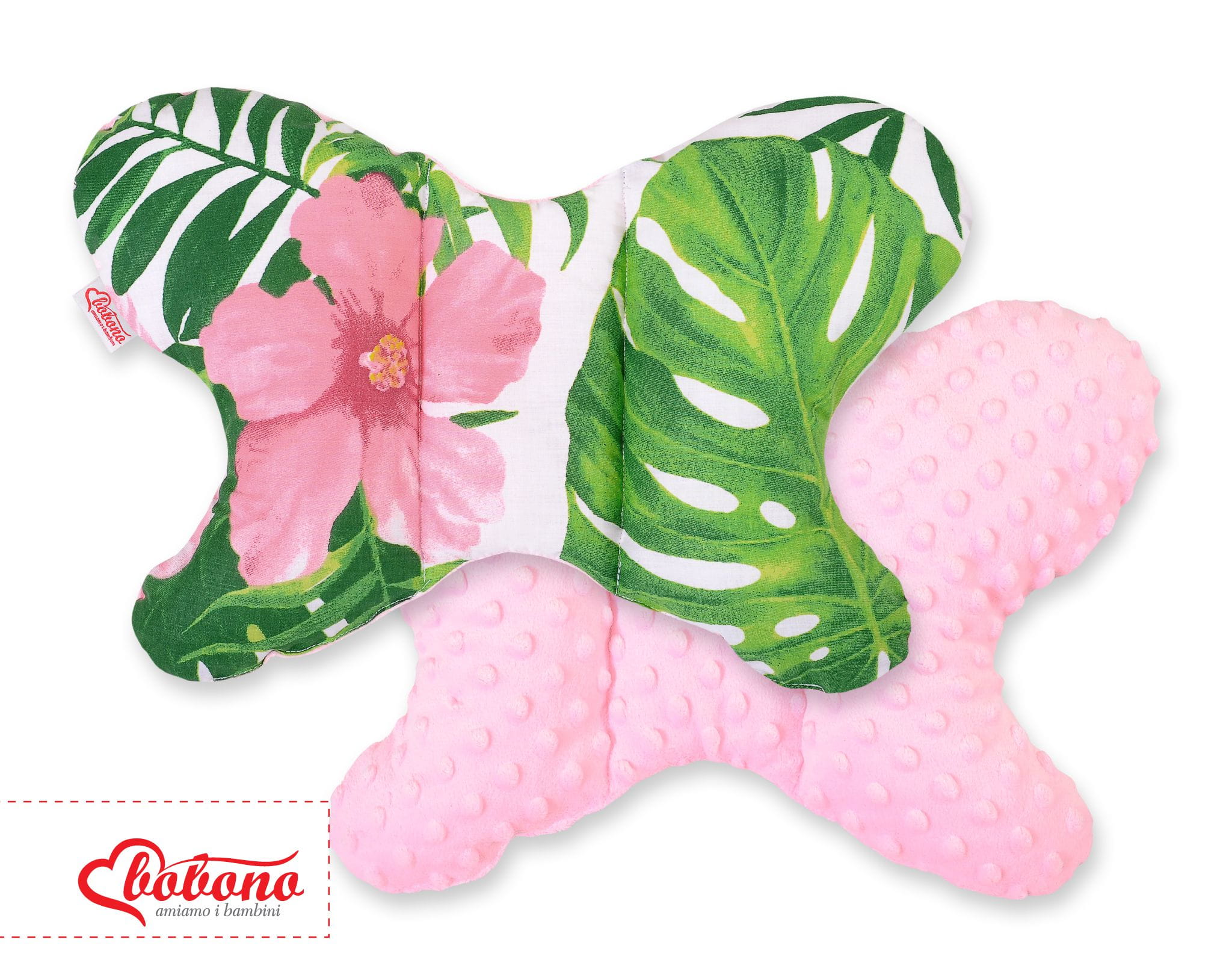 Poduszka antywstrząsowa BOBONO motylek - kwiaty tropikalne/różowy