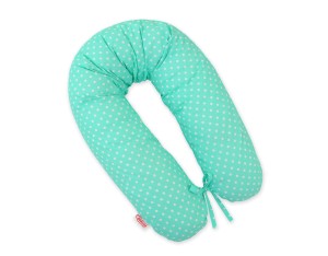 Poduszka ciążowa Longer dla kobiet w ciąży do spania + zdejmowana poszewka - Białe grochy na mięcie