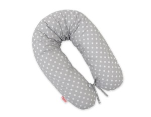 Poduszka ciążowa Longer dla kobiet w ciąży do spania + zdejmowana poszewka - Białe grochy na szarym