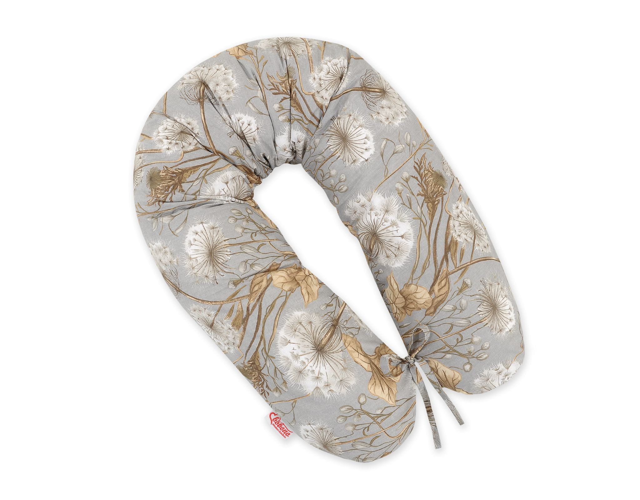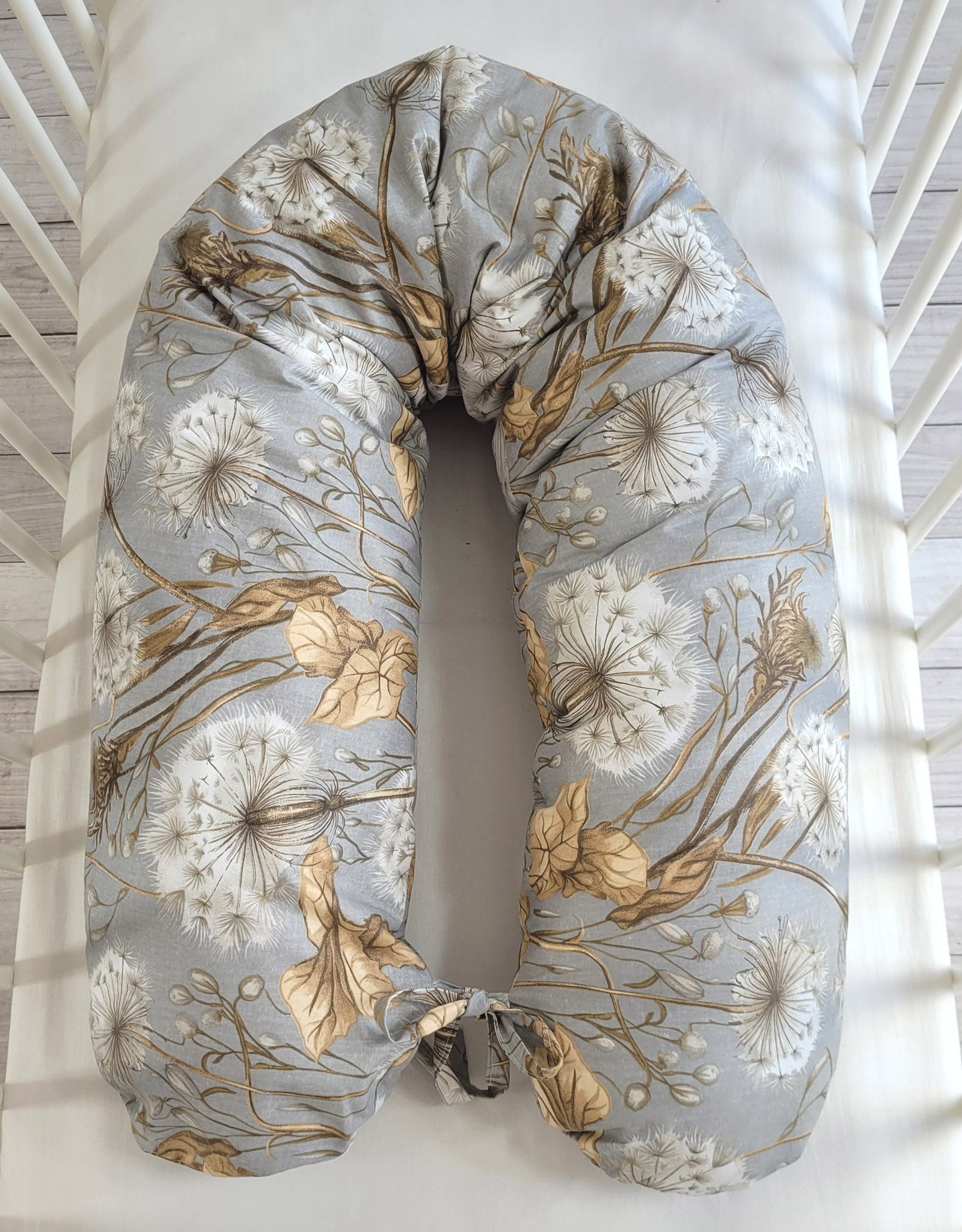 Poduszka ciążowa Longer dla kobiet w ciąży do spania + zdejmowana poszewka - Dmuchawce na szarości