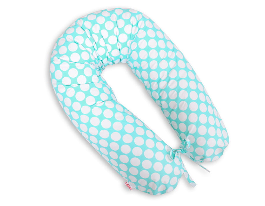 Poduszka ciążowa Longer dla kobiet w ciąży do spania + zdejmowana poszewka - Kropki turkusowe