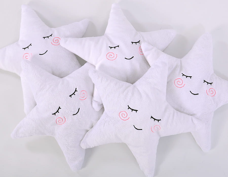 Uśmiechnięta haftowana buzia gwiazdki przyciąga wzrok dziecka. Poduszka jest też ciekawą ozdobą pokoju dziecięcego.