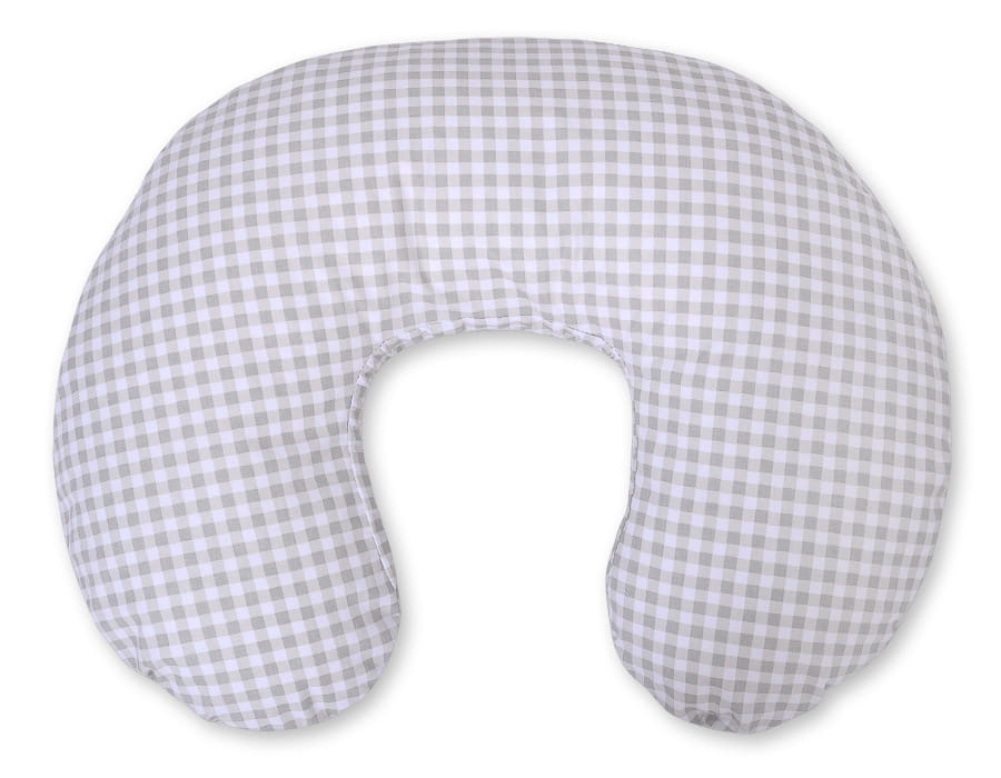 Poduszka rogal do karmienia fasolka + zdejmowana poszewka - Kratka szara