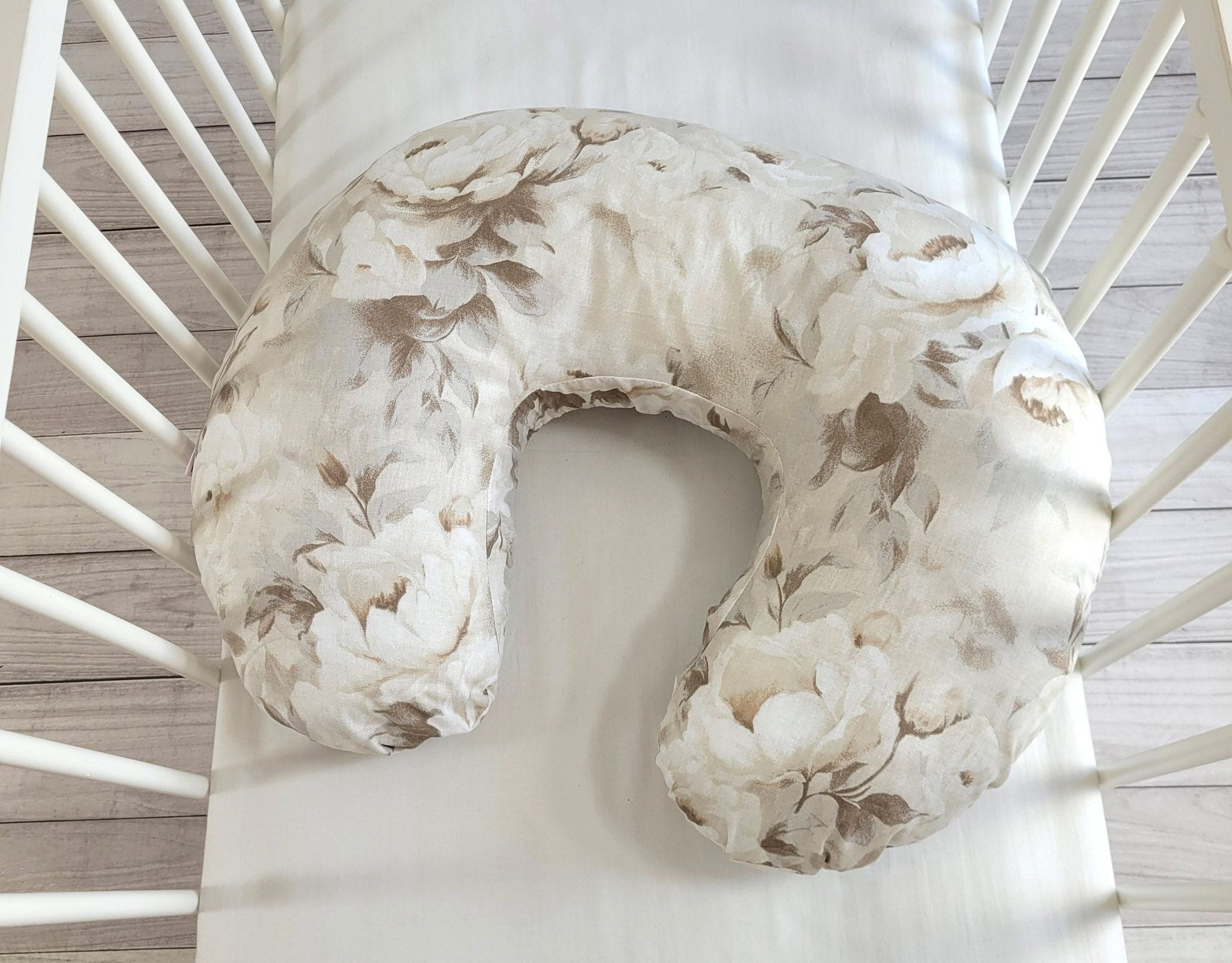 Poduszka rogal do karmienia fasolka + zdejmowana poszewka - Peonies beige