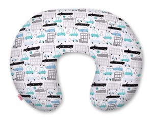 Poduszka rogal do karmienia fasolka + zdejmowana poszewka - autka szaro-turkusowe