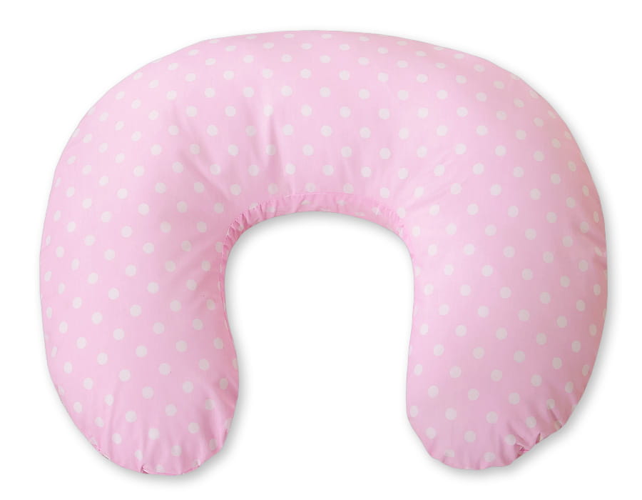 Poduszka rogal do karmienia fasolka + zdejmowana poszewka - białe grochy na różowym