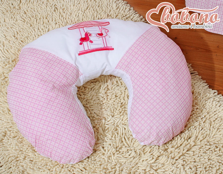 Poduszka rogal do karmienia fasolka + zdejmowana poszewka- karuzelka haftowana różowa