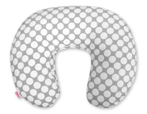 Poduszka rogal do karmienia fasolka + zdejmowana poszewka - kółeczka białe na szarym tle