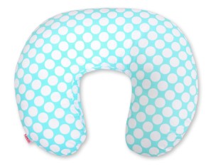 Poduszka rogal do karmienia fasolka + zdejmowana poszewka - kółeczka białe na turkusie