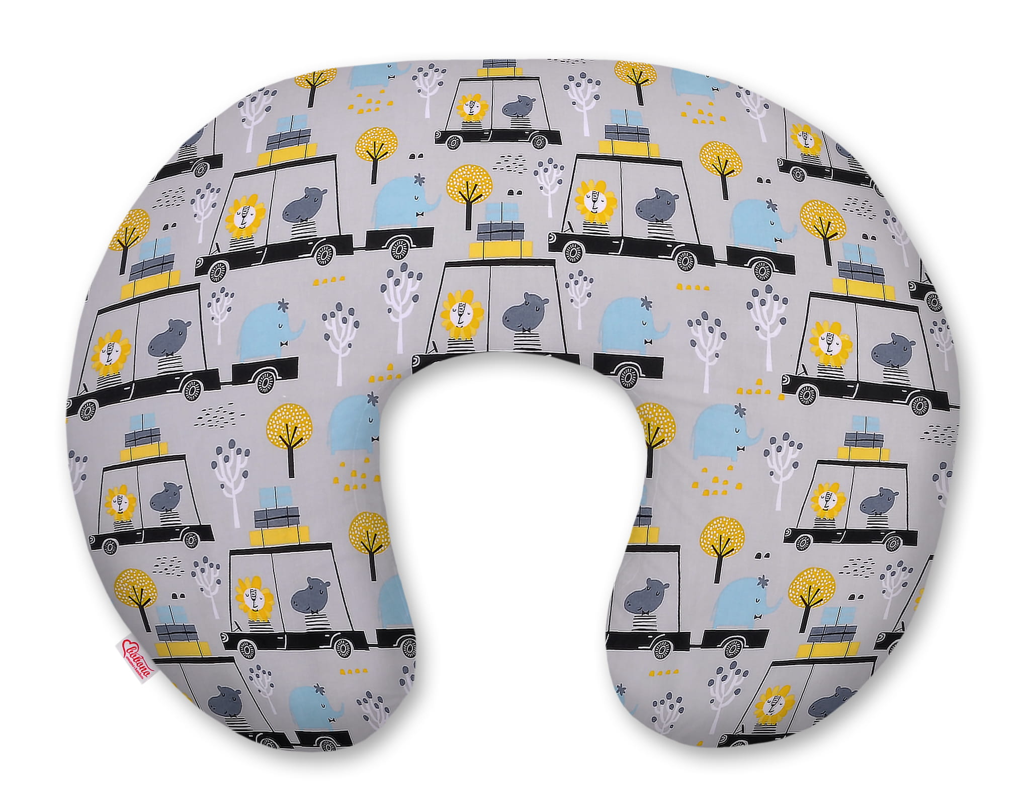 Poduszka rogal do karmienia fasolka + zdejmowana poszewka - zwierzątka w autkach