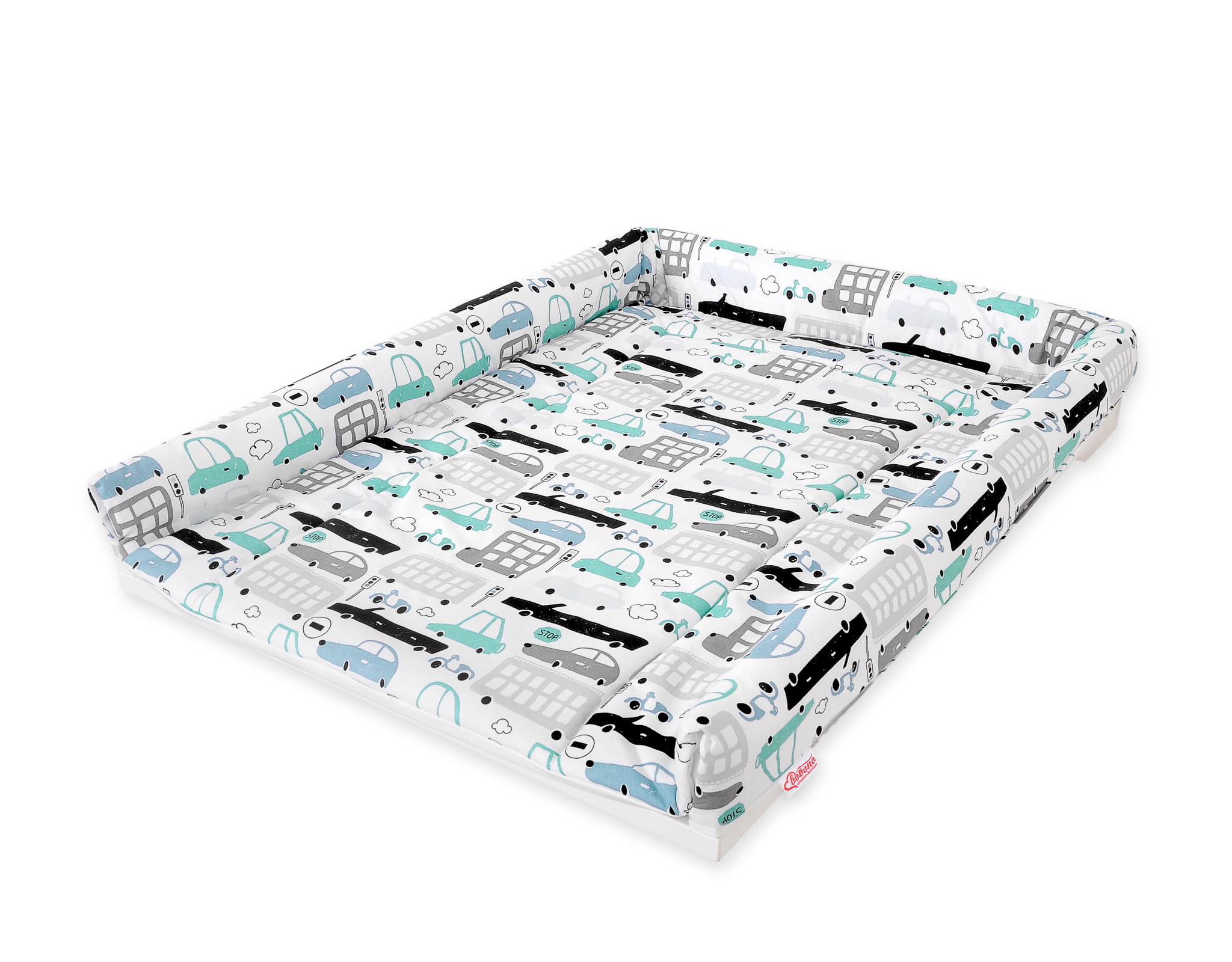 Pokrowiec nakładka na przewijak na komodę - autka szaro-turkusowe
