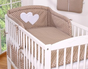 Pościel 2-cz 120x90 - Wiszące serduszka grochy na brązie