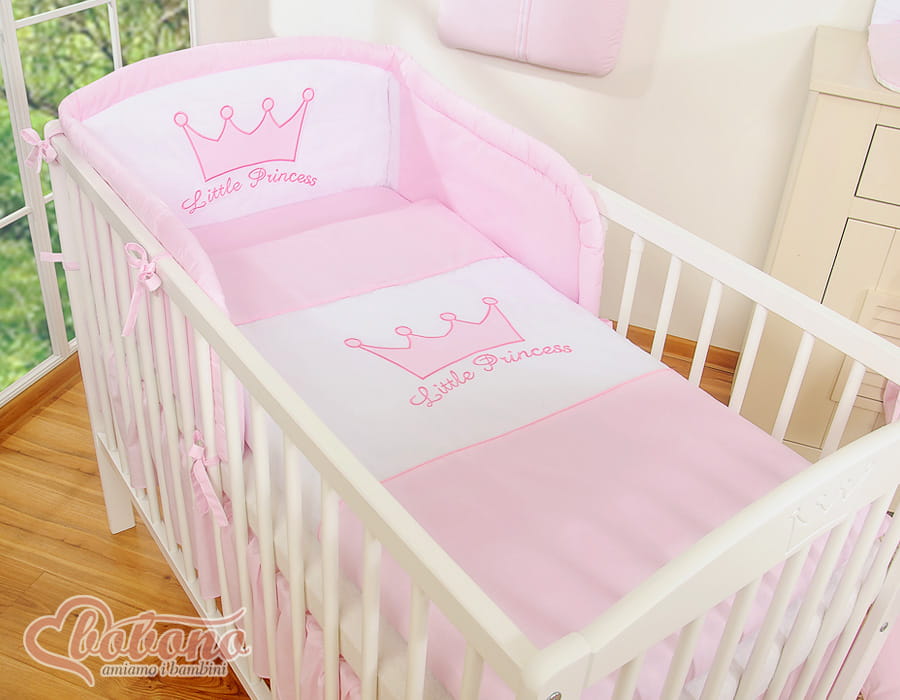 2. POSZEWKA NA KOŁDERKĘ 90x120 cm lub 135x100 cm. Wykonana z tkaniny 100% bawełnianej. Bezpiecznej dla delikatnej skóry dziecka. Posiadającej atest Okotex lub TUV. Poszewka zapinana na bezpieczny kryty zameczek. Na środku poszewki znajduje się śliczną aplikacja z koroną i wyhaftowanym napisem: "Little Prince" - dla chłopca lub "Little Princess" - dla dziewczynki.