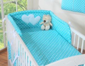 Pościel 2-cz Serduszka białe grochy na turkusie