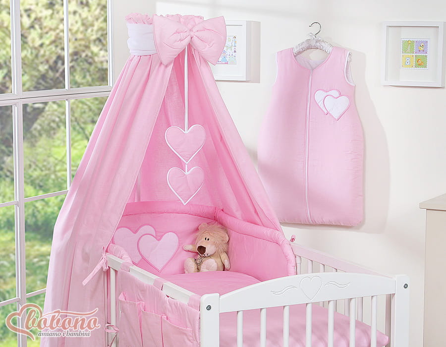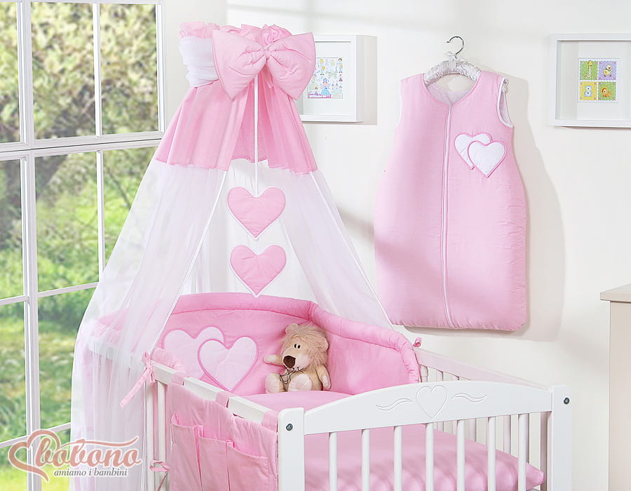 Pościel 5-cz 120x90 z baldachimem - Wiszące Serduszka różowe