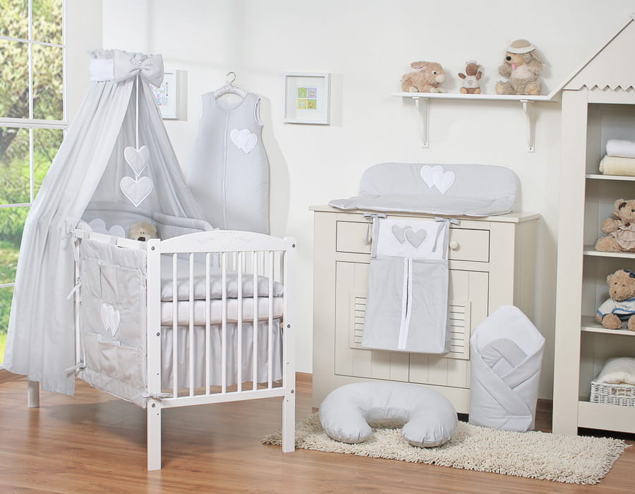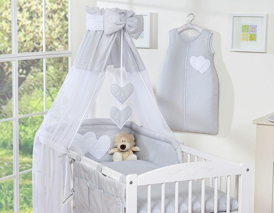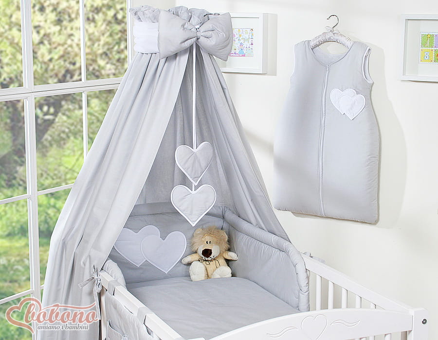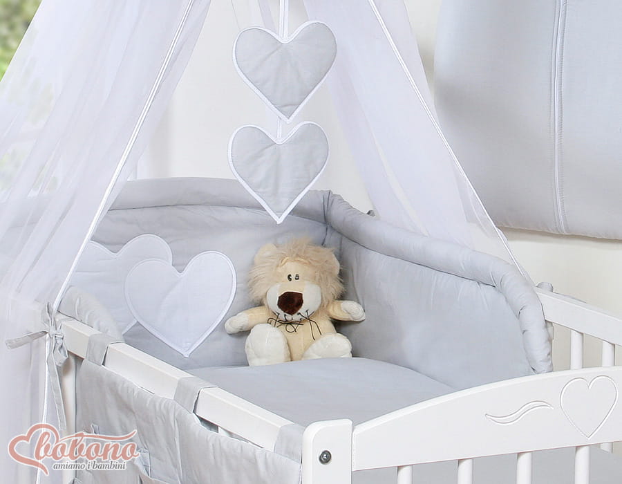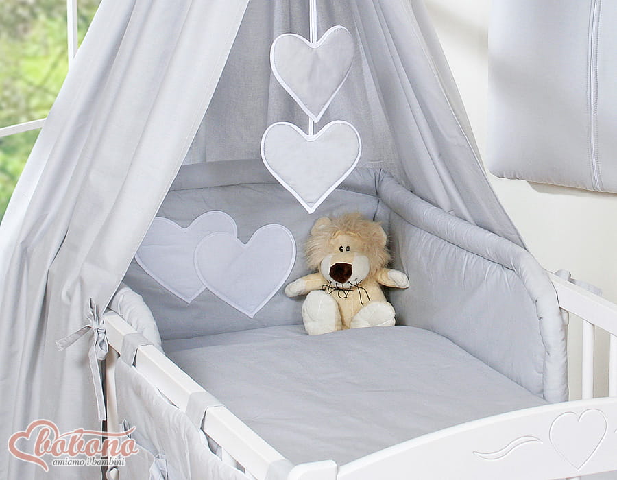 Pościel 5-cz 120x90 z baldachimem - Wiszące Serduszka szare